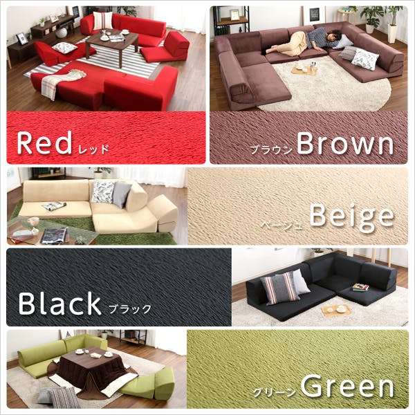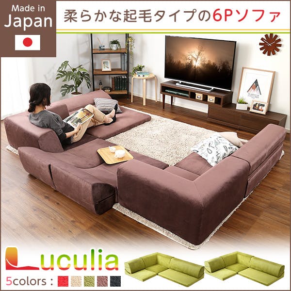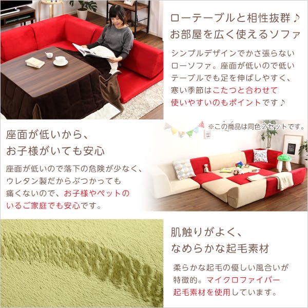 フロアソファ 3人掛け ロータイプ 起毛素材 日本製 (5色)同色2セット|Luculia-ルクリア-こたつやローテーブルにピッタリな日本製コーナーローソファ!6つのパーツを自由に組み替え可能です。1P、2Pの背もたれを倒せば、横になるのにちょうどいい角度に!柔らかな起毛素材は肌ざわり抜群、カラフルな5カラーからお選びいただけます!