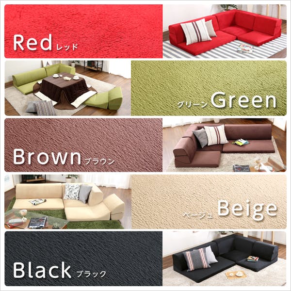 フロアソファ 3人掛け ロータイプ 起毛素材 日本製 (5色)組み替え自由|Luculia-ルクリア-こたつやローテーブルにピッタリな日本製コーナーローソファ!3つのパーツを自由に組み替え可能です。1P、2Pの背もたれを倒せば、横になるのにちょうどいい角度に!柔らかな起毛素材は肌ざわり抜群、カラフルな5カラーからお選びいただけます!