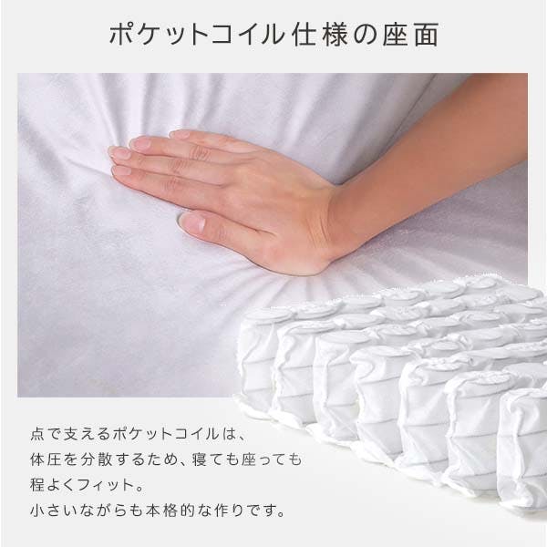 主材/張地:ポリエステル 100% 構造部材:スチールパイプ、ポケットコイルスプリング 中身:ウレタン