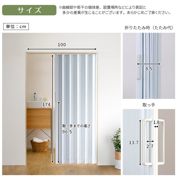 簡単に取付が可能なアコーディオンドア!大型取手で、握りやすく使いやすい!最大4.5cmの丈詰めが可能です!シンプルな模様で、お部屋のイメージを崩すことなくスマートにドアや目隠しになります!プラスチックレールを使用しているので、ドライバーで簡単に取り付け可能です!