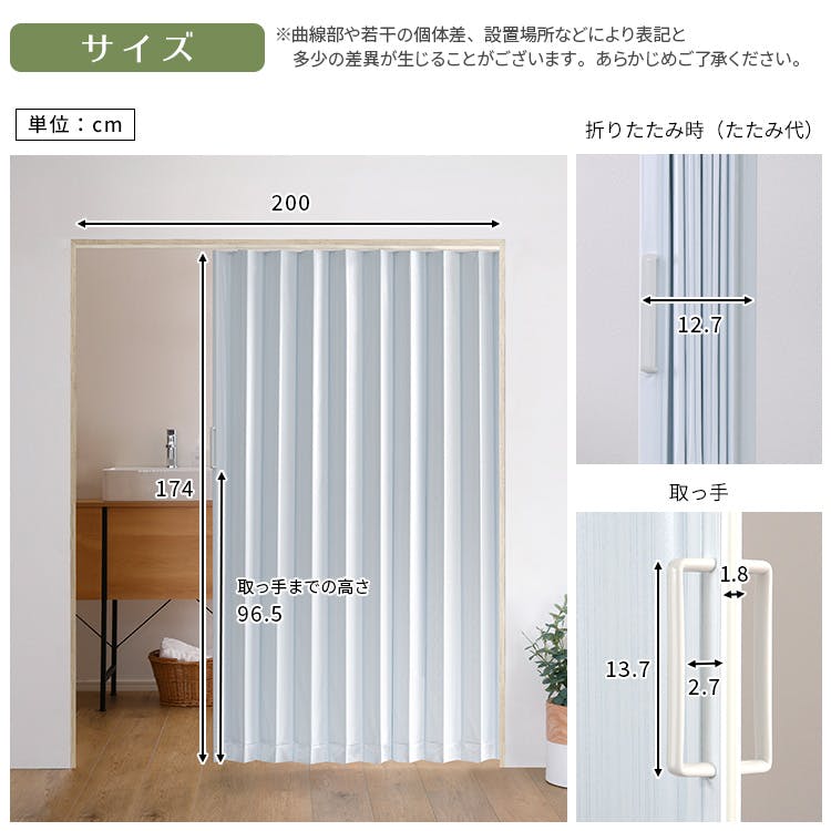 簡単に取付が可能なアコーディオンドア!大型取手で、握りやすく使いやすい!最大4.5cmの丈詰めが可能です!シンプルな模様で、お部屋のイメージを崩すことなくスマートにドアや目隠しになります!プラスチックレールを使用しているので、ドライバーで簡単に取り付け可能です!