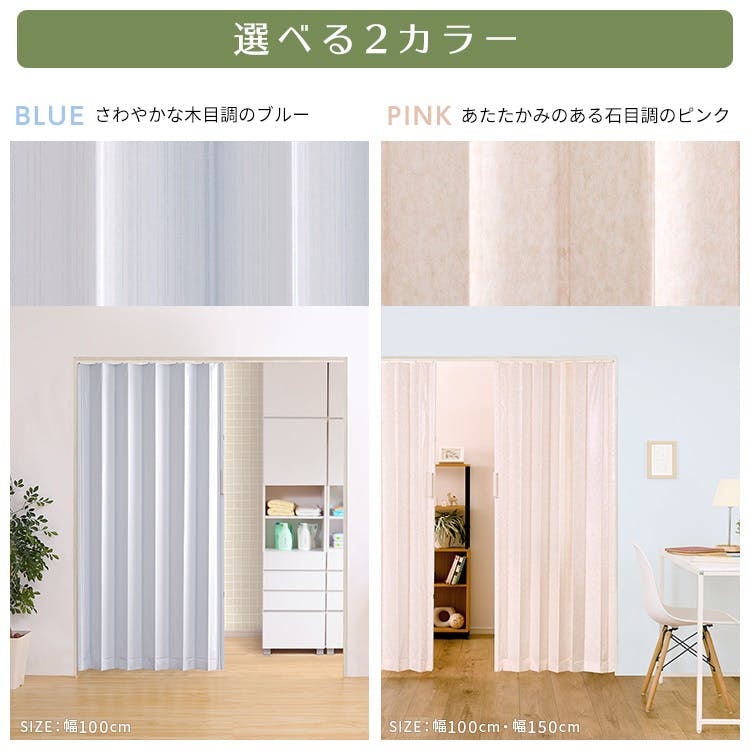 簡単に取付が可能なアコーディオンドア!大型取手で、握りやすく使いやすい!最大4.5cmの丈詰めが可能です!シンプルな模様で、お部屋のイメージを崩すことなくスマートにドアや目隠しになります!プラスチックレールを使用しているので、ドライバーで簡単に取り付け可能です!