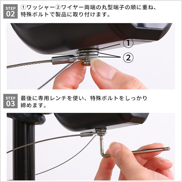 どこでもセンサーカメラ用 盗難防止ワイヤー!乾電池式と充電式の両方に対応可能です!特殊ネジで取り付けることで、盗難の心配がなくなります。柱に巻いて取り付けや、壁にネジで取り付けることが可能です。