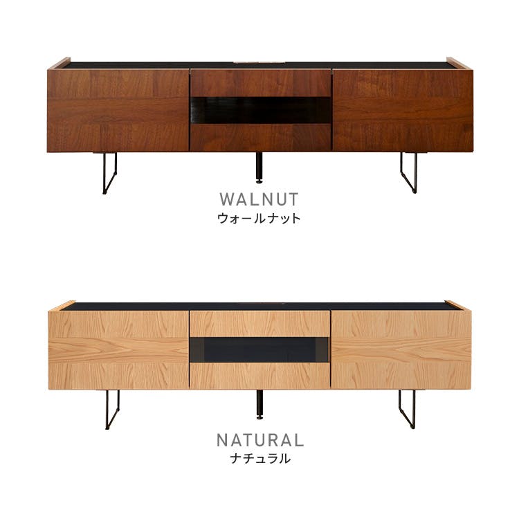 日本製の150cm幅 ローボード・テレビボード前板にはウォールナットとオークの突板を使用しているので、本物の木のリアルな質感と風合いを感じていただける商品です。四角いフォルムとスリムなスチール脚が高級感のある見た目で、お部屋の雰囲気をあげてくれます!収納力も高く実用性もばっちりです!