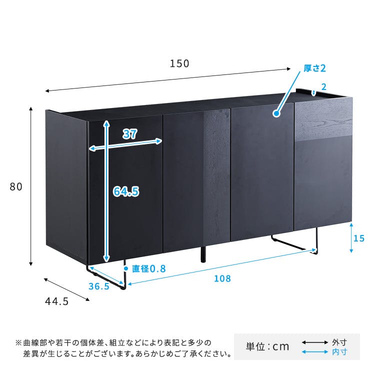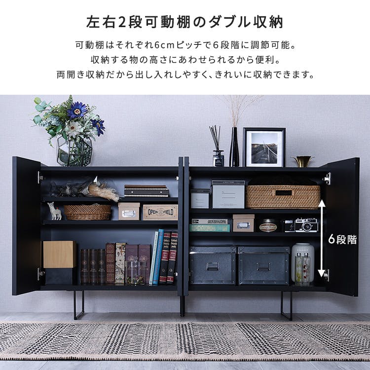 日本製 スタイリッシュなサイドボード 150cm幅 【Dylan-ディラン-】/カラー:ブラック/ お客様組立 #sh-22-sb150--bk 【4535306218805】【送料込み】
