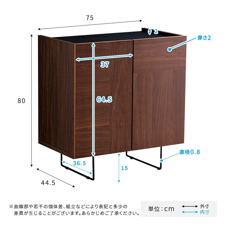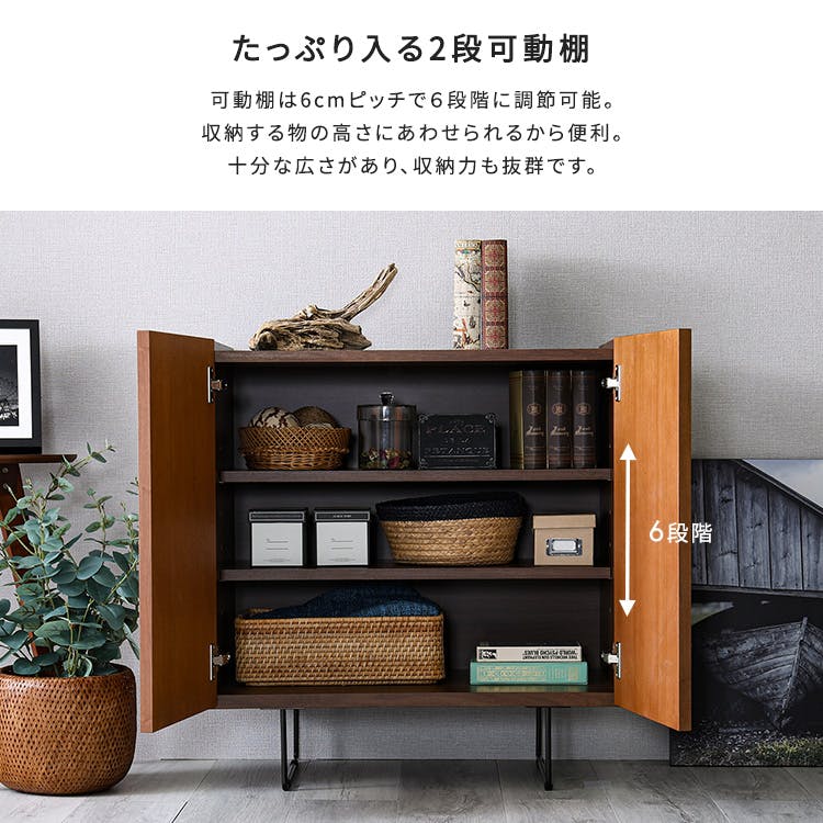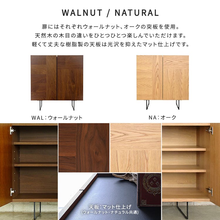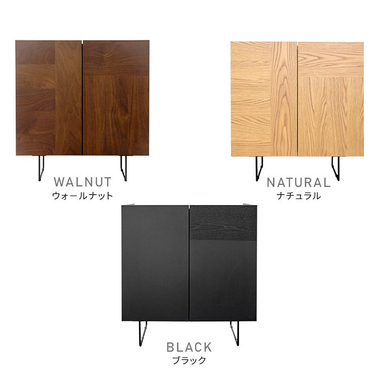 日本製の75cm幅 サイドボード・キャビネット前板にはウォールナットとオークの突板を使用しているので、本物の木のリアルな質感と風合いを感じていただける商品です。四角いフォルムとスリムなスチール脚が高級感のある見た目で、お部屋の雰囲気をあげてくれます!収納力も高く実用性もばっちりです!