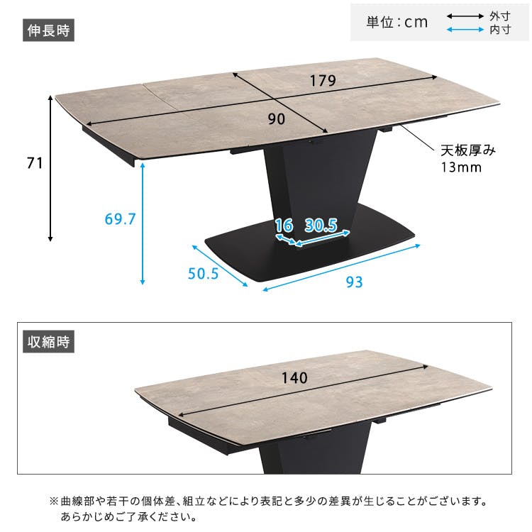 ・ホワイト(無地色)の天板は柄物と比較して、工程上の斑点、キズ 目立ちやすい場合がございます。 ・伸長部分の隙間に指を挟まないようにお気を付けください。 ・組立は4人以上で行ってください。 組立時間:40分