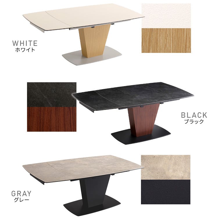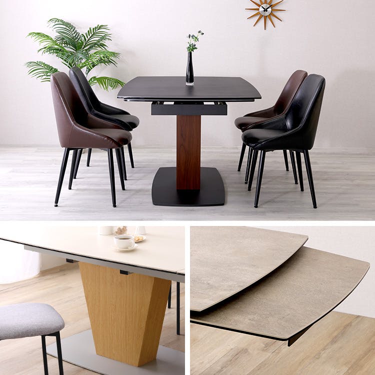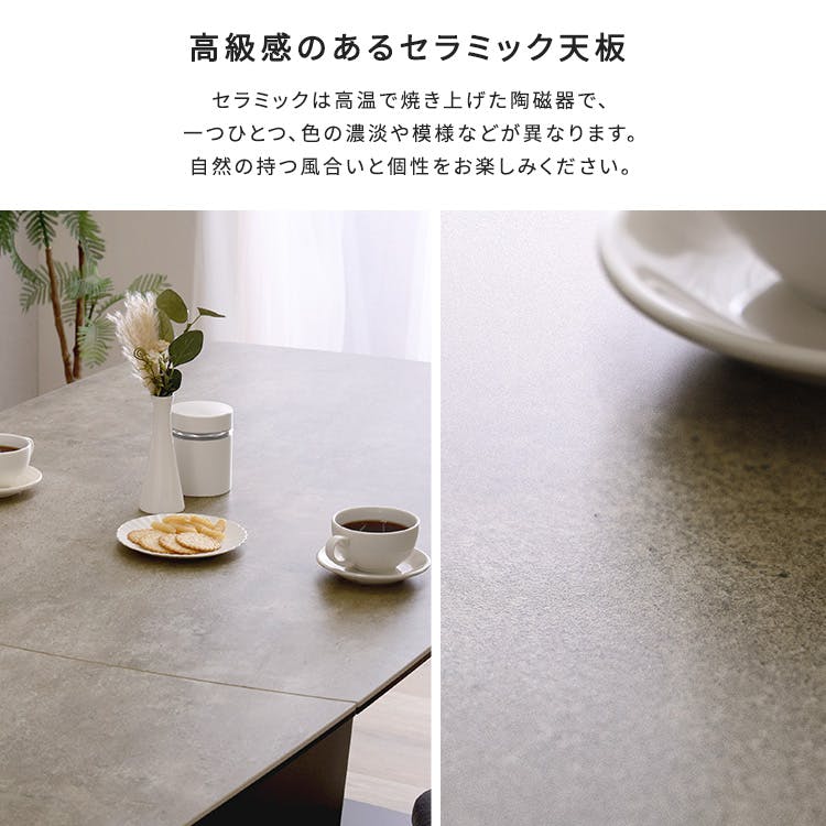 シーンに合わせて長さを変えれる伸長セラミックダイニングテーブル!普段使いはもちろん、伸長することで人がたくさん集まるシーンにぴったりなサイズに!簡単に伸長操作ができるので女性でも安心です!セラミック天板なので耐久性と耐熱性に優れており、また汚れにも強いのでお手入れも簡単です。