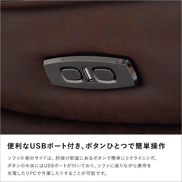 3人掛け レーザーファブリックのカウチ型電動リクライニングソファ!レザーファブリックとは見た目は高級感のあるレザーでありながら、肌触りは触り心地の良いファブリックという2つをあわせもつ素材です。リクライニング部分はOKIN社製のモーターで品質も安心!カウチとリクライニングが合わさっているのでおうちでのくつろぎに特化。