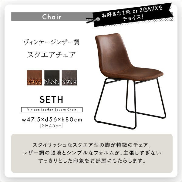 スクエアチェア4脚と110cm幅ヴィンテージテーブルの5点セット!チェアは3色から1色もしくは2色、テーブルは2色からお選びください。チェアは座面・背もたれが曲線となっているので身体を包み込みフィットします。スチール脚は身体を面で支える台形デザインを採用。ブラックスチールがテーブルの脚ともよく合い、相性抜群です!テーブルの天板には、水や汚れに強いPVCを使用。触感にこだわった木目を側面まで施し、無垢材のような重厚感を持たせています。2人暮らしやファミリーの人にピッタリのダイニングセットです。