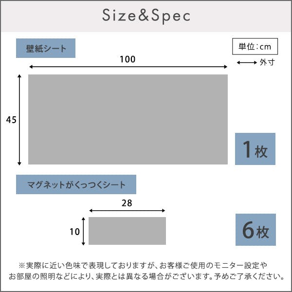 壁紙:45×100cm マグネットシート:10×28cm×6枚、【商品重量】約680g