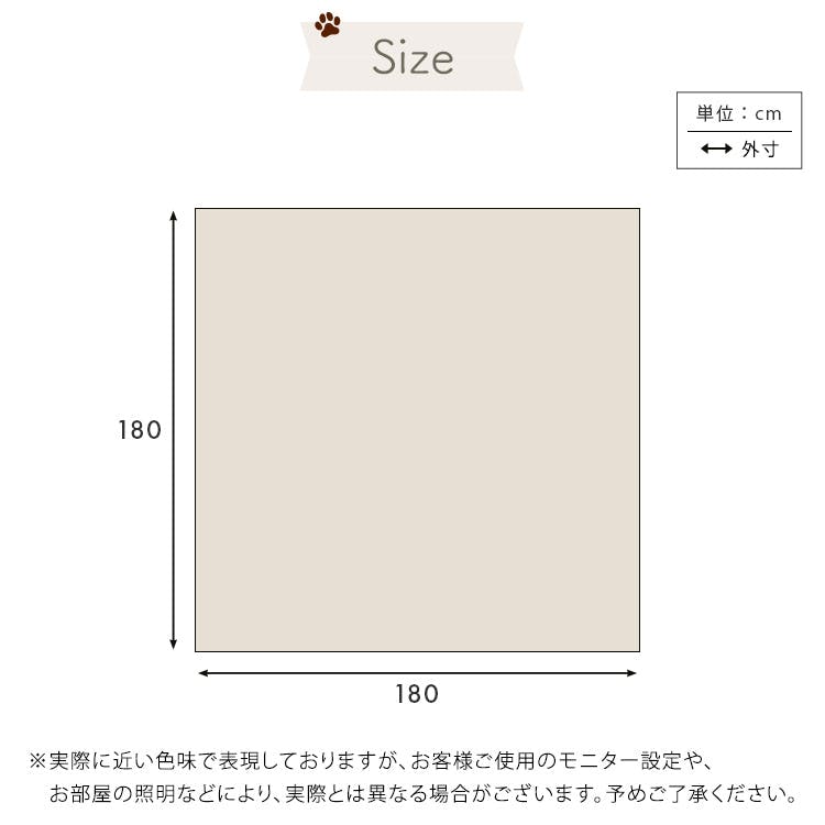 ペットにやさしい防滑ラグマット 180×180cmサイズ!凸凹加工がしてあるのでペットの怪我を軽減します!また耐久性もあり爪でひっかいてもボロボロになりにくいです!※滑り止めシート付きなのでズレも心配ありません。嬉しい消臭機能もついており悪臭を吸着して放しません!