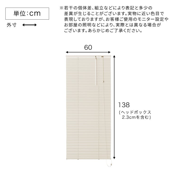 アルミブラインド 【幅60×高さ138cm】 アイボリー シンプル 上下昇降 角度調節 調光 カーテンレールに取り付けもOK 穴あけ不要 全32サイズ!窓 光コントロール 熱中症対策 おしゃれ お客様組立 #sh-29-tab60-138--iv 【4535306235000】【送料込み】