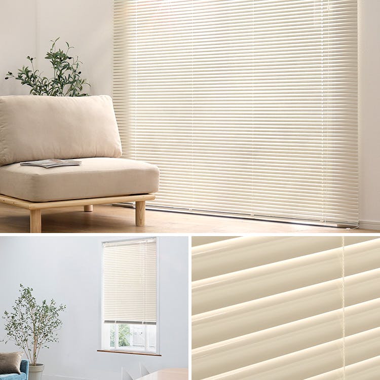 シンプルでどんなお部屋にも合わせやすいアルミブラインド!アイボリーカラーでどんな部屋にも合わせやすいアルミブラインドです。スラットを上下に昇降したり、角度を調節することで光の取り込む量を調節することができます。専用の金具でカーテンレールにも取り付けでき穴あけ不要なので賃貸でもご使用いただけます。全32サイズで、お使いの窓に合わせてサイズをお選びいただけます!