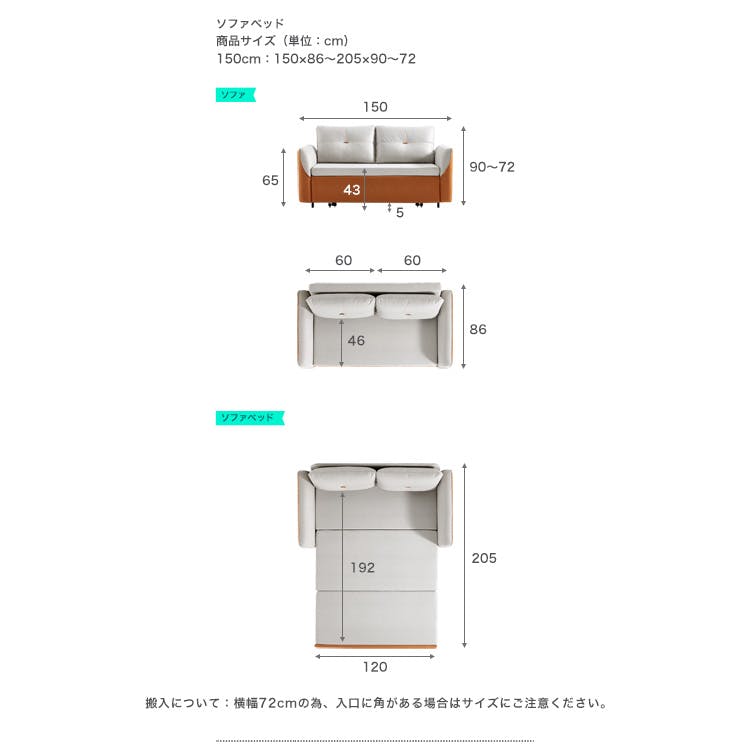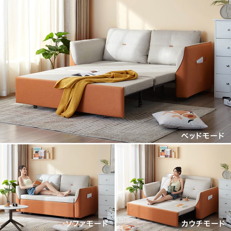 この商品は、ソファとベッド両方の用途に対応する多機能ソファベッドです。弾力性の高いウレタンスポンジと滑らかな肌触りのポリエステル生地を使用し、快適な座り心地と寝心地を提供します。カバーはクッション、ひじ掛け、背もたれ部分のみ取り外し可能です。