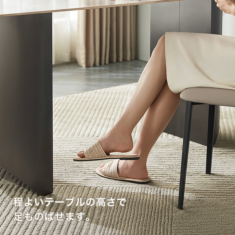 美しい光沢の厚さ11ミリ、幅160cmの高級感溢れる天板を使ったテーブルと無垢材を合皮を使用したチェア6脚のダイニングセットです。安定感のあるスチール脚と、快適な座りごこち。お手入れも簡単で、耐熱性にも優れていて、長く愛用頂けるセットです。