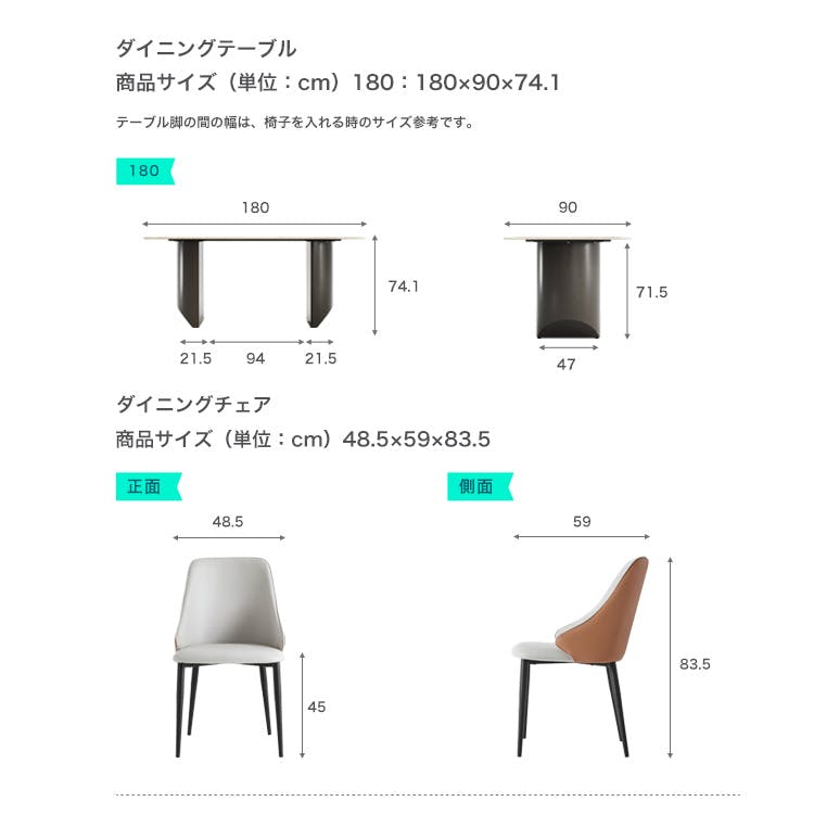 テーブル:(約)180×90×74.1cm  チェア:(約)48.5×59×83.5cm、【商品重量】テーブル:(約)70kg  チェア:(約)5.4kg