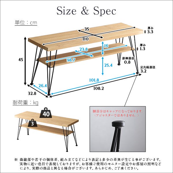 組立商品 天板上耐荷重:40kg 天板下耐荷重:3kg