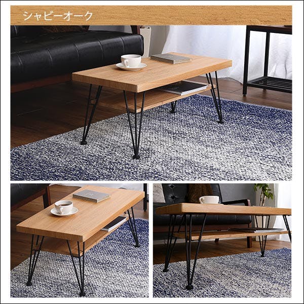 ちょうど良い高さと奥行のヴィンテージセンターテーブル!1ROOMの部屋にピッタリで、食事や勉強をするのに使いやすいサイズに仕上げております。天板下には収納しやすい棚板が付いており、雑誌や小物を置くことができます。スタイリッシュな細身脚が特長で圧迫感なく使用できます。