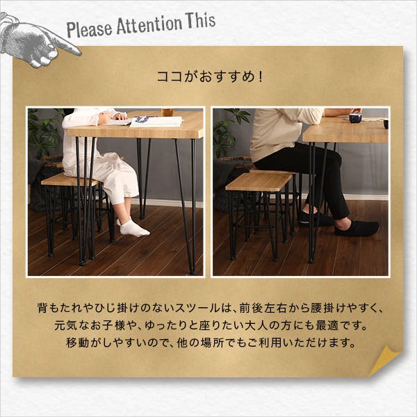 ヴィンテージダイニング5点セット! スタイリッシュな鉄脚のダイニングセットが、お部屋をヴィンテージスタイルに演出します。 どんなお部屋にも合わせやすい、落ち着いたシャビーオーク、ウォールナットの2色を採用。 コンパクトサイズなので、ご家族だけでなくカップルの方にもお使いいただけます。