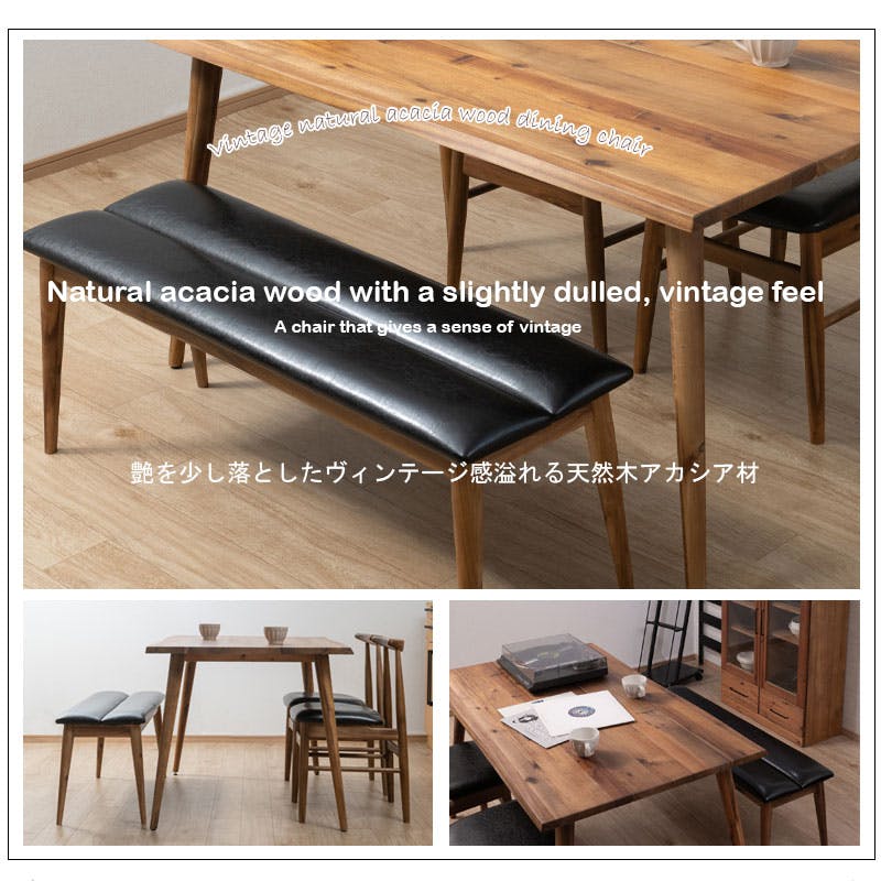 【Caribbean】 ダイニングベンチ 天然木 単品 天然木 PUレザー チェア 椅子 アカシア材 ビンテージ ヴィンテージ 新生活 木製 木目 木 食卓椅子 無垢材 カフェ 北欧 玄関 椅子 イス 店舗 新居