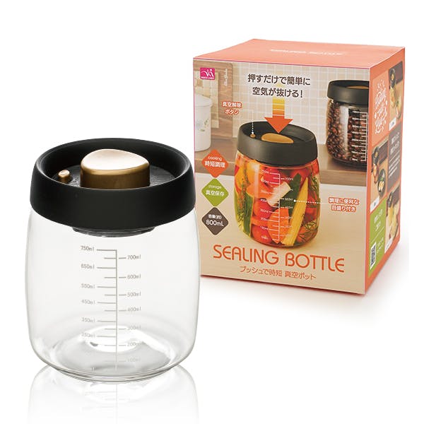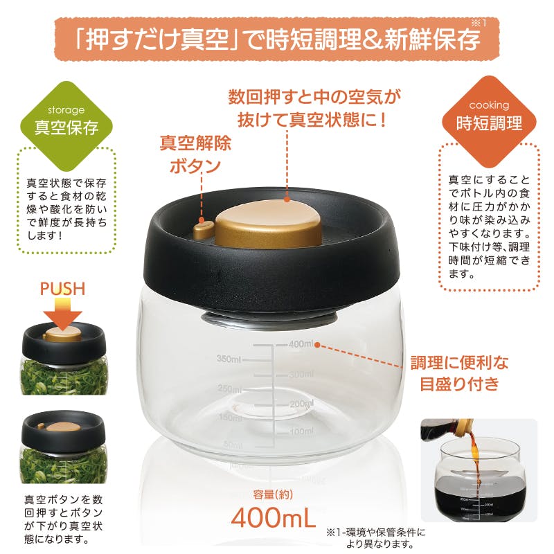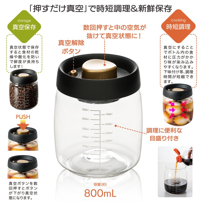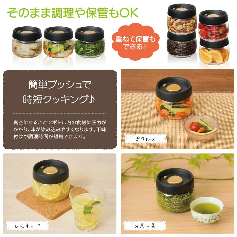 【プッシュで時短 真空ポット 小(400ml)大(800ml) セット(各2個)】 ちあふる ボタンで真空保存 時短 作り置き まとめ買い 食品劣化対策 便利 45714146959