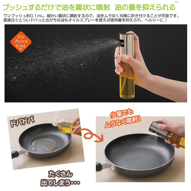 【プッシュでヘルシー オイルスプレー】 ちあふる ヘルシー調理を簡単に 霧状 低油 料理 サラダ フライパン 時短 キッチン 4571414697347