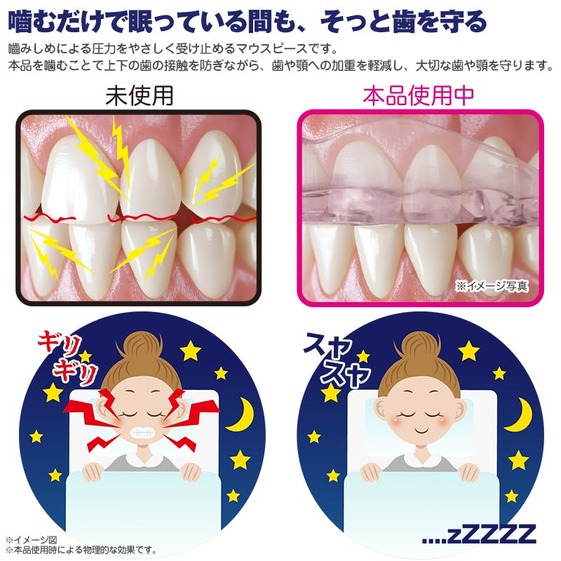 ●本品は歯を矯正するものではありません。●歯の治療を受けている方、歯のぐらつきのある方、顎関節部や歯茎などに痛みや異常のある方、骨格の成長期にあたる方は、本品使用に関して事前に医師にご相談ください。●乳幼児へのご使用はおやめください。●破損した場合や劣化した場合は、誤飲するおそれや口内を傷つけるおそれがありますので、ご使用しないでください。●型取りの際は、やけどにご注意ください。必ず本体の温度を確認してから口に入れてください。