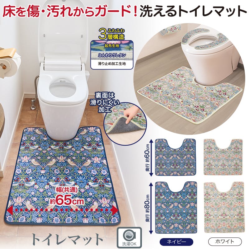 【モリスワールドコレクション トイレマット 65×60(cm)/ホワイト】 ちあふる 細め空間にぴったり 洗える 吸水 速乾 滑りにくい 北欧調 トイレマット おしゃれ 4571414697439