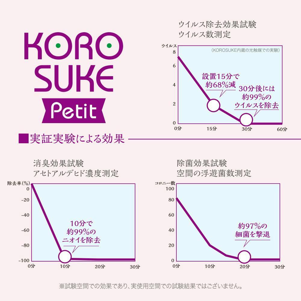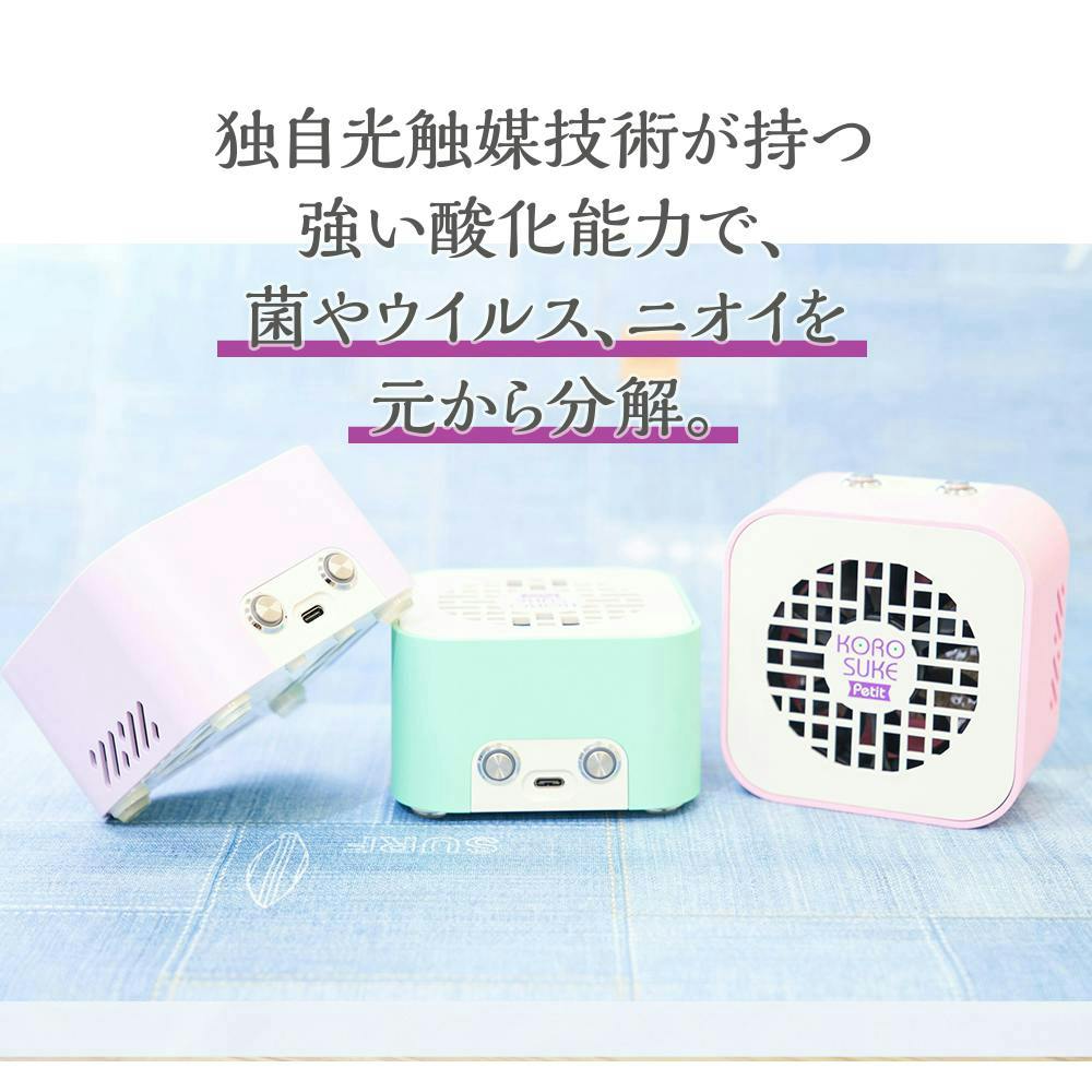 【持ち運びできる空気清浄機 コロスケプチ KOROSUKE Petit ライトラベンダー 約102×102×62mm】 ちあふる USB給電 軽量 コンパクト 光触媒 UV-LED フィルター交換不要 日本製 消臭 花粉 PM2.5 JAN:4573566210245