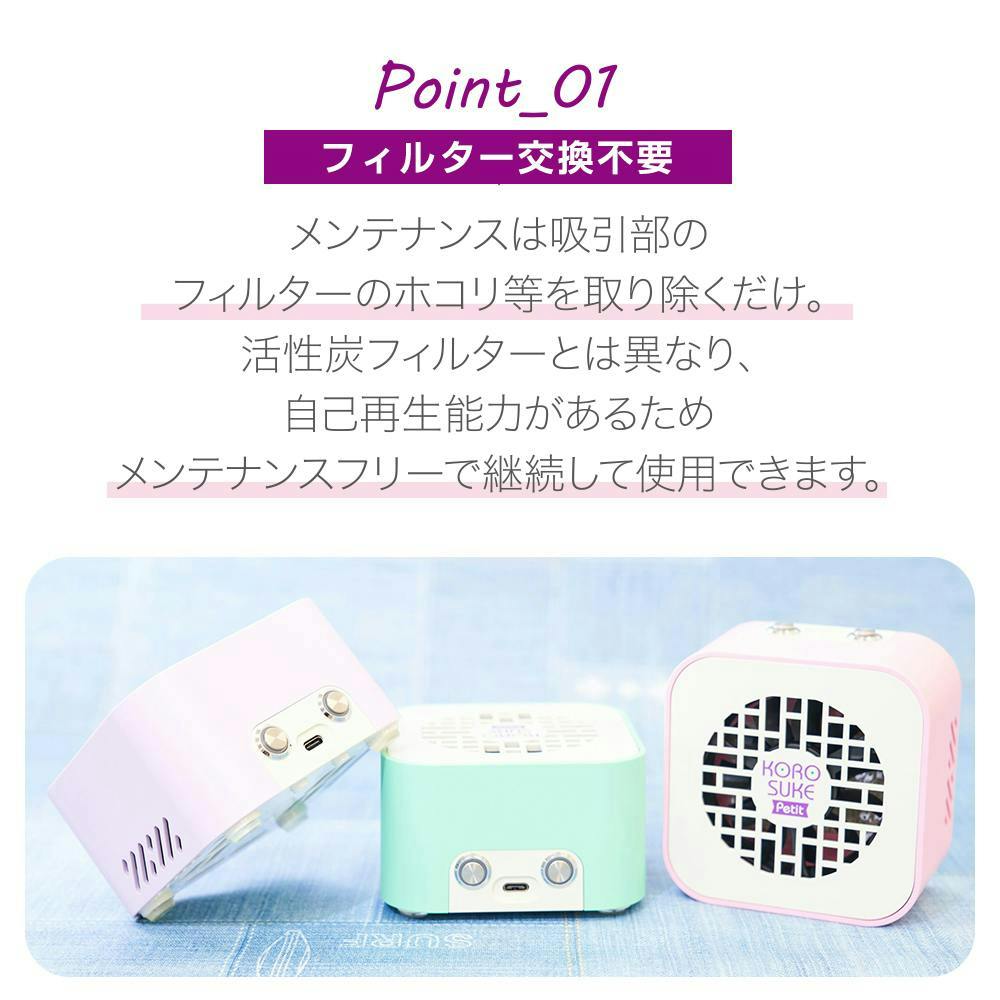 • 【持ち運びできる空気清浄機 コロスケプチ KOROSUKE Petit コーラルピンク 約102×102×62mm】 ちあふる USB給電 軽量 コンパクト 光触媒 UV-LED フィルター交換不要 日本製 消臭 花粉 PM2.5 JAN:4573566210252