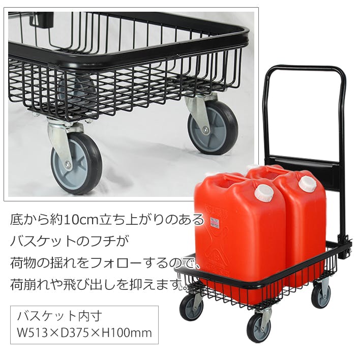 そこから約10cm立ち上がりのあるバスケットのフチが荷物の揺れをフォローするので、に崩れや飛び出しを押さえます。使わない時は折りたたんでコンパクトに収納することができます。