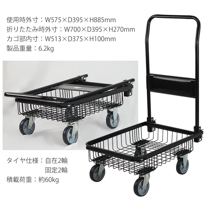 台車 折りたたみ 軽量 折りたたみ式台車 バスケットタイプ 台車 軽量 作業用 静音 キャスター 持ち運び