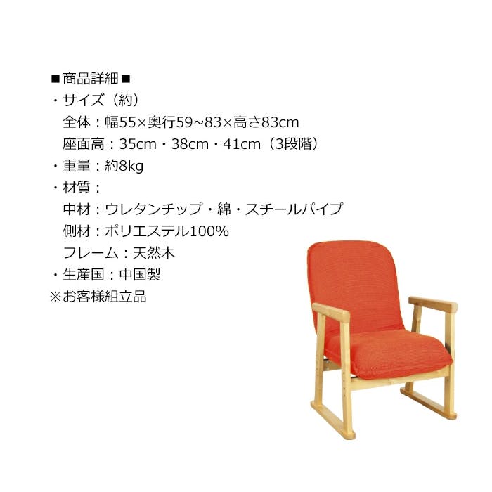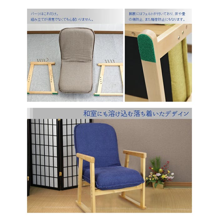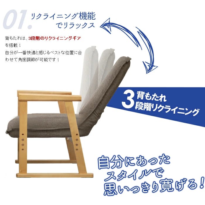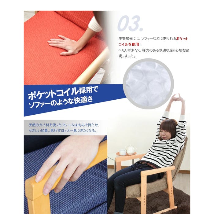 座椅子 ポケットコイル リクライニング 肘掛け 肘付き高座椅子 チェアー ミドルタイプ 高座椅子 3段階 おしゃれ