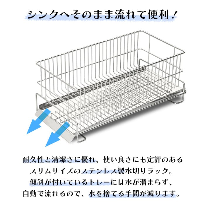 水切りラック スリム 横置き ステンレス 水が流れる 水切りかご 日本製 燕三条