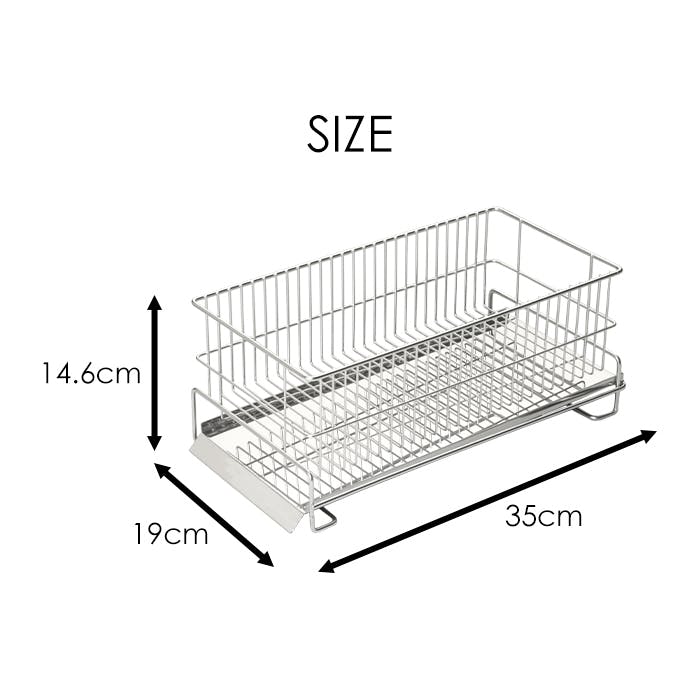 耐久性と清潔さに優れ、使い良さにも定評のあるスリムサイズのステンレス製水切りラック。傾斜が付いているトレーには水が溜まらず、自動で流れるので、水を捨てる手間が減ります。