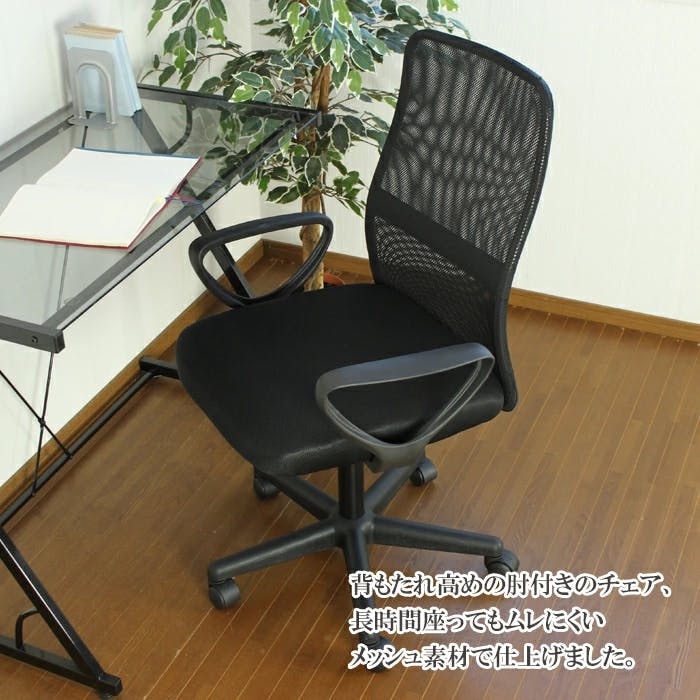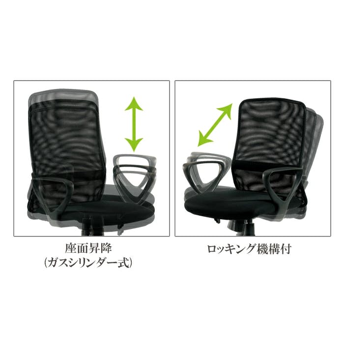 メッシュバックチェアー 肘付き メッシュチェアー デスクチェアー 事務椅子 ガス圧 昇降式 ロッキング機能 キャスター付き 組立式