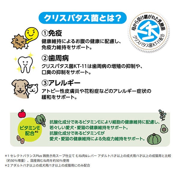 鶏むね肉、デキストリン(食物繊維源)、乳酸菌(クリスパタス菌KT-11)、増粘多糖類