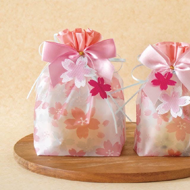 ヘッズ ラッピング袋 巾着 W220×D110×H200mm ピンク 20枚 さくらPE巾着バッグ HEADS SKR-BM1