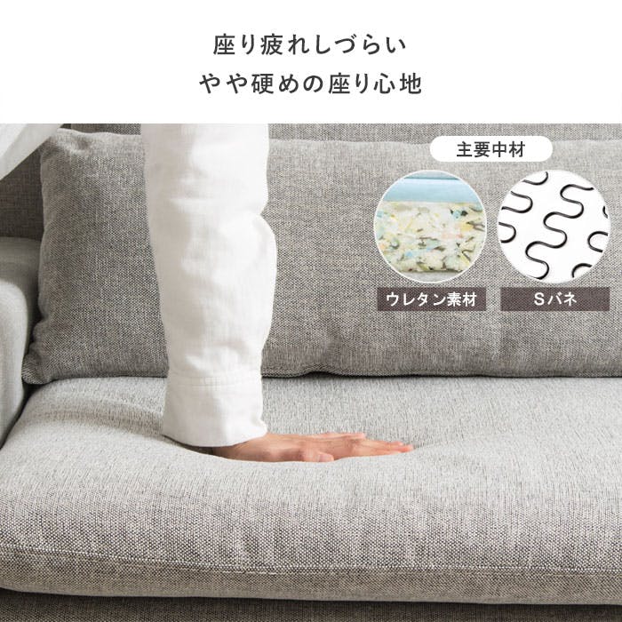 ゆったりワイドで贅沢なくつろぎサイズ。 高級感あふれるくつろぎの空間を贅沢に味わえる、ワイドサイズの3人掛けソファー・ホルム。北欧デザインのシンプルモダンで飽きのこない表情が、心地よいリラックス空間を創るのに最適。家族みんなが集まってくつろげる大きめサイズで、奥行が深いのでソファベッドの代わりにもなります。腰当てクッションが付いており、膝上に置いたり枕にしたりと便利にお使いいただけます。