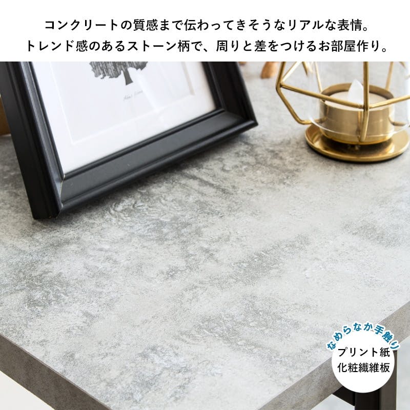 天板:化粧繊維板(ストーン柄/プリント紙、ブラック/PVC)、脚部:スチール、粉体塗装