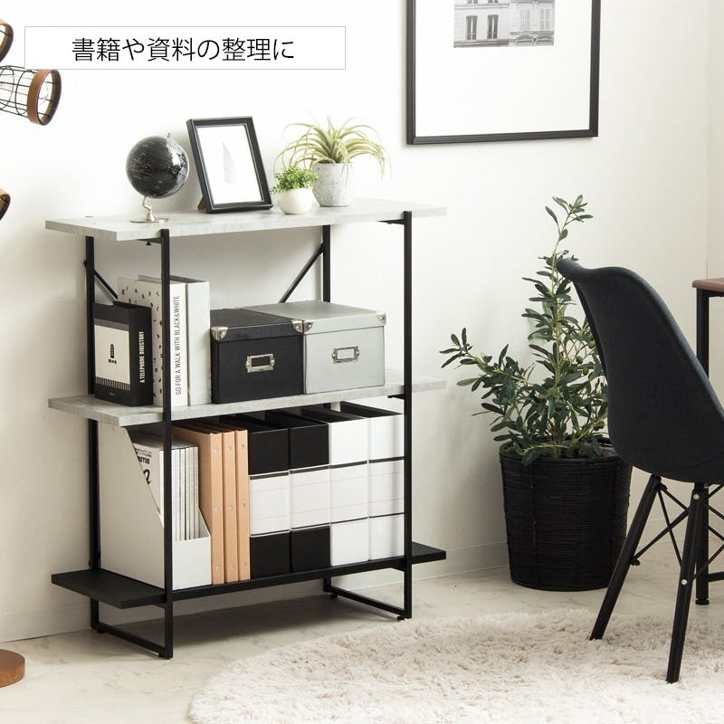 シェルフ3段 幅80 オープンラック IW-1330/カラー:ストーン/ブラック/ お客様組立  【送料込み】 #4.94373E+12