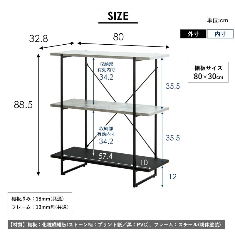 シェルフ3段 幅80 オープンラック IW-1330/カラー:ストーン/ブラック/ お客様組立 【送料込み】 #4.94373E+12
