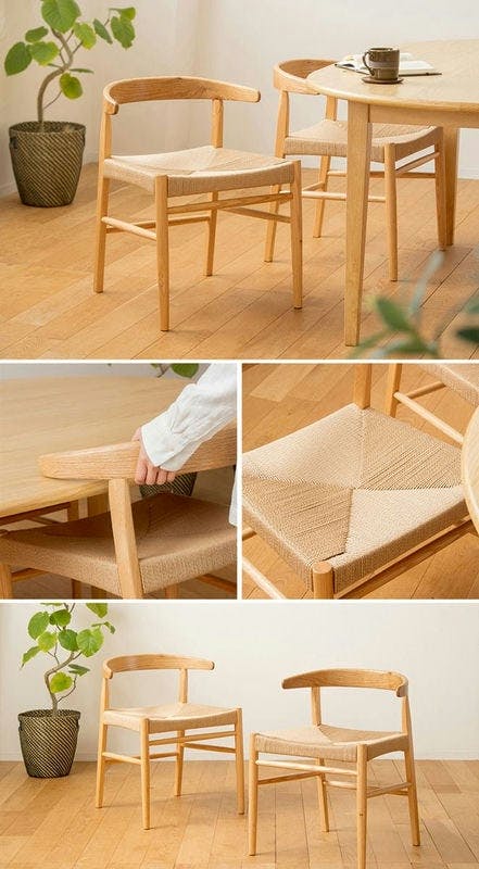 伝統の技と快適さを融合した、天然木のペーパーコードチェア。 天然木のフレームと美しいペーパーコード座面が印象的な、北欧テイストのダイニングチェア。ナチュラルでやさしい色合いと、直線を基調としたシンプルなデザインが、空間に上質な温もりを添えます。座面には、職人の手作業で丁寧に編み込まれたペーパーコードを使用。しなやかで強度のある素材が、適度な弾力と通気性を生み出し、長時間でも快適な座り心地を実現します。