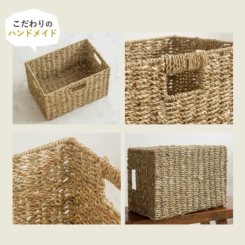 ナチュラルな素材感が暮らしに馴染む シーグラスバスケット。 天然素材のシーグラスを、熟練の職人が手作業で丁寧に編み上げたバスケット。手仕事ならではの温かみとナチュラルな風合いが、毎日の暮らしにそっと寄り添います。S、M、Lの3サイズセットになっているので、家中どこでも様々な用途に活躍。ごちゃつきがちな小物をすっきり収納し、生活感を隠しながらお部屋を美しく整えます。