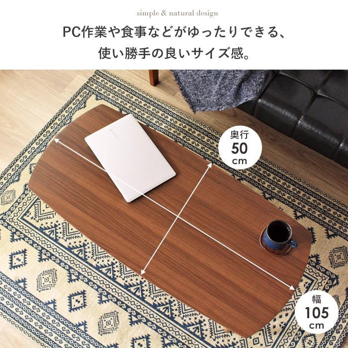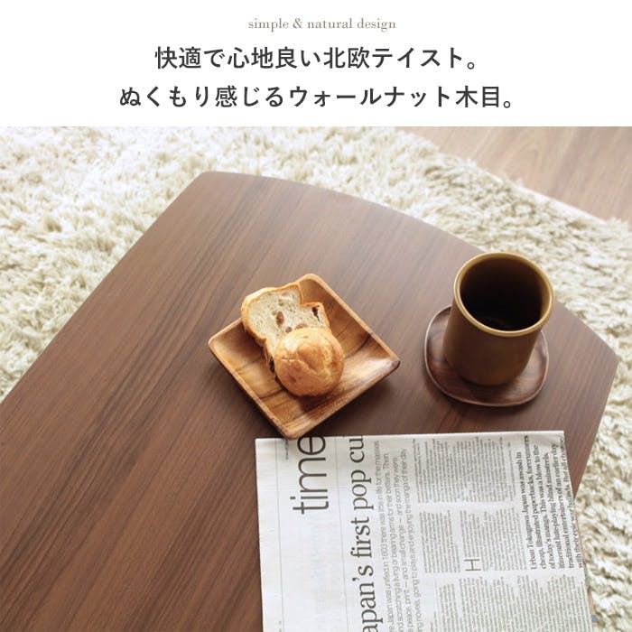 シンプルなデザインとぬくもりのある佇まいが、長く愛されロングセラーになっている木製折れ脚テーブル。 ぬくもりを感じる素材感と丸みを帯びた柔らかなデザインが北欧テイストを演出する折りたたみリビングテーブル「マーブル」。幅105cmは2~3人掛けソファにちょうど良く、奥行き50cmで場所を取りません。天板は硬質なUV塗装仕上げでキズ・汚れに強く、長持ちします。脚部は折りたたみ式で、掃除や模様替えの際に便利です。手軽に北欧テイストを取り入れられるリーズナブルな価格も魅力です。