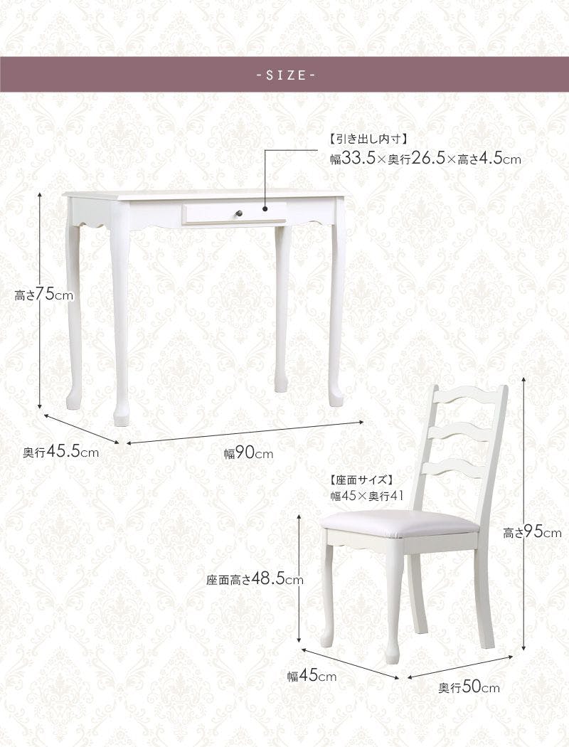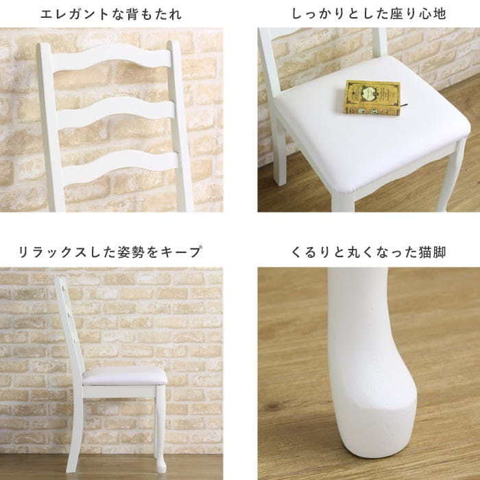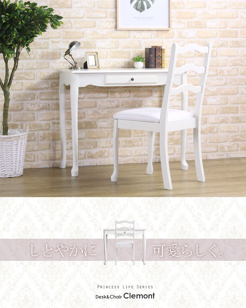 エレガントでクラシックなお姫様スタイルのチェア。どんな空間にも華やかさをプラス。 女性の憧れ、エレガントでクラシックなお姫様スタイルのチェア。曲線を多用したアンティーク調のデザインに、可愛らしい猫足が大人ガーリーな印象を与えます。カラーは真っ白ではなく、少しアイボリーがかった柔らかな色合い。デスク&チェアセットでのコーディネートがおすすめですが、チェア単品でもお使いいただけます。
