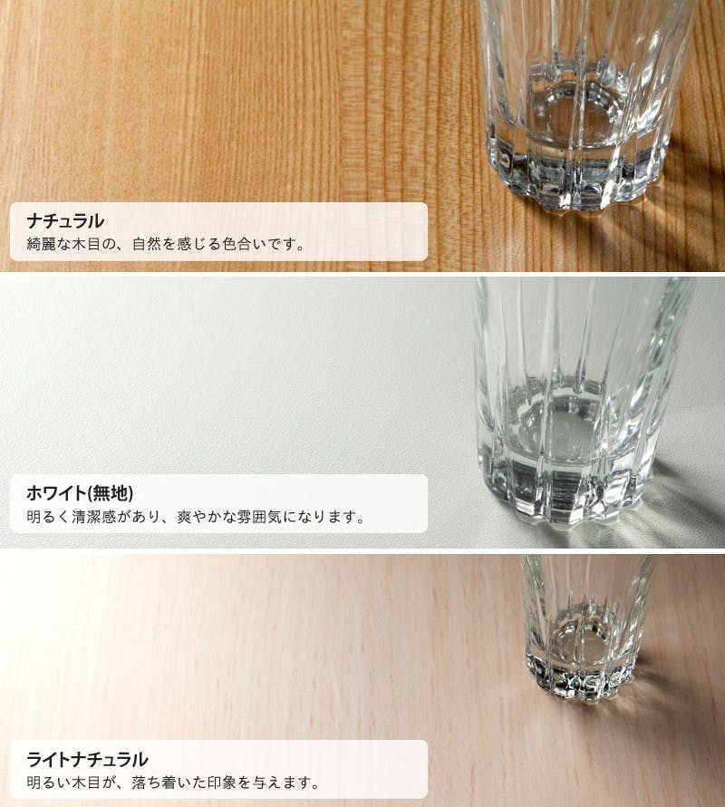 本体:プリント紙化粧繊維板、表面加工:ウレタン樹脂塗装