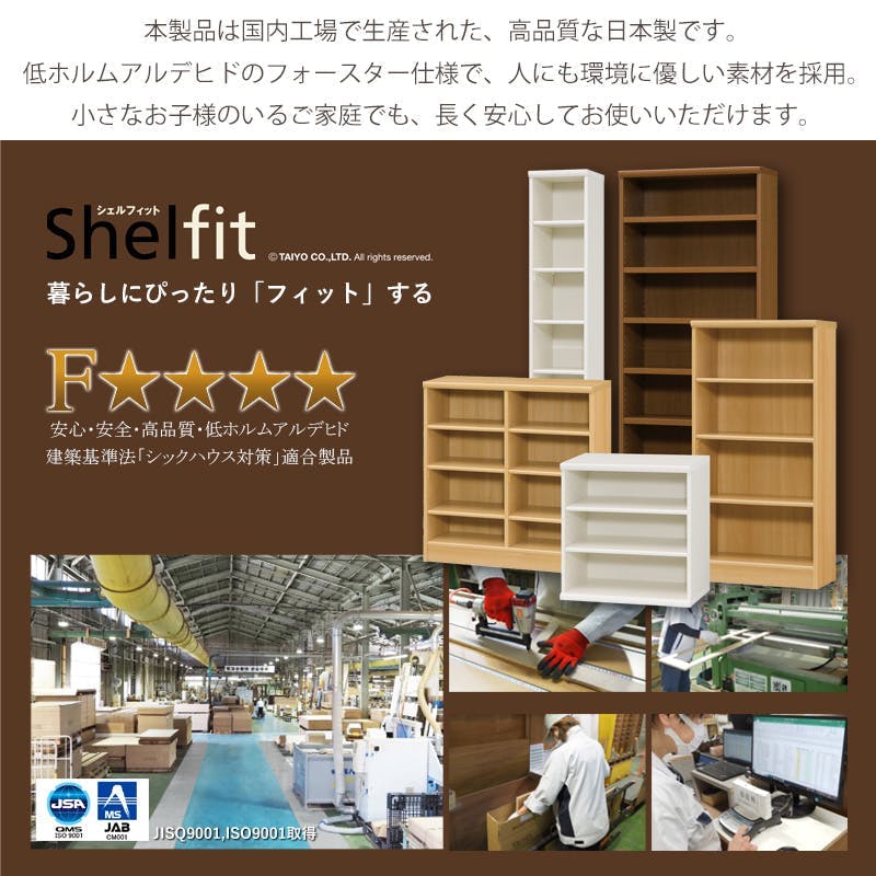 豊富なサイズとカラーから選べる!シンプルデザインでどんな空間にもフィットするオープンラック、定番本棚。棚板は全て取り外しができるフルオープン構造なので、自由に収納ができます。あなたのライフスタイルにぴったりの一台を見つけて、理想の空間を演出してみませんか?使う安心感。最高等級フォースター印のシンプルオープンラック。●幅×高さ・豊富な30サイズ●お部屋に合わせて選べる5カラー●本棚に最適な奥行き●安心・高品質な日本製●強度を高める「フリーストップ棚受け」●全段 3cm間隔で棚板の高さが調節可能