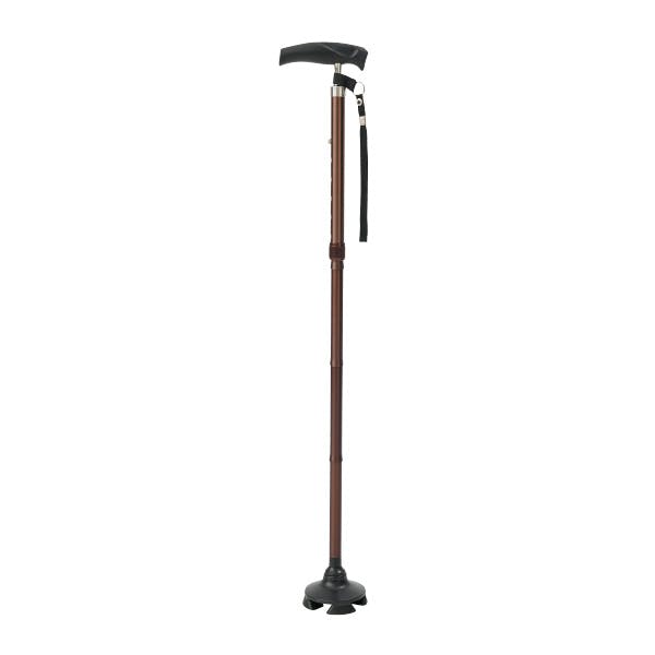 【折りたためるあんしんステッキ ブロンズ】 ちあふる 4点接地で安定 折りたたみ 6段階調節 軽量 コンパクト ポーチ付 JAN:4571414692083